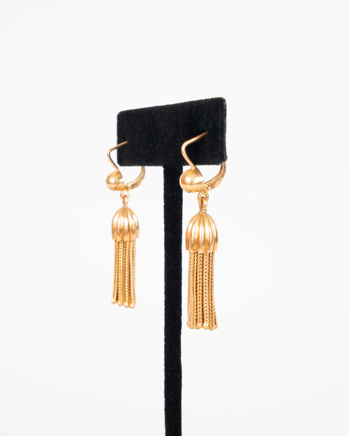 a lovely pair of stud locking swing sway micro braided orb tipped chain duster earrings with fluted braid grippers crafted in Verona, Italy in solid 18k gold.