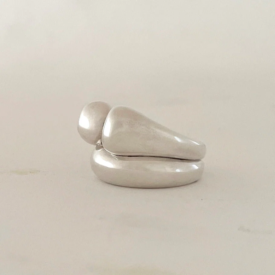 OJ A00 aka the double down ring (nicknamed by Agnes who loves to gamble) is the first in a series of OLD JEWELRY designs by Sarah Burns. the soft and weighty two in one ring has a good flop to it. this solid 925 silver ring is crafted in New York City. after casting, each ring is finished by hand, hallmarked and deeply stamped "OJ A00". fits true to size.