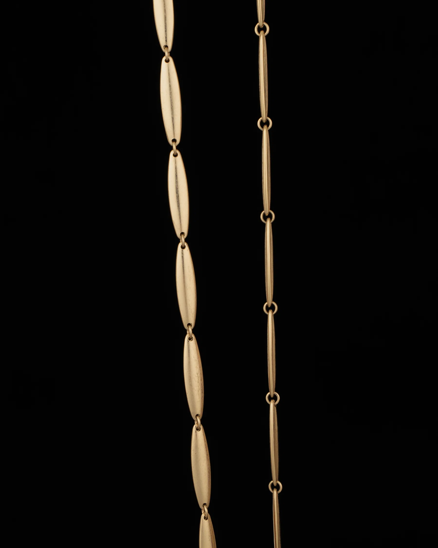 an Italian studio crafted solid 14k yellow gold segmented grain necklace - soft tapered links looped up and fully soldered, finished with a secure lobster clasp closure.Ā