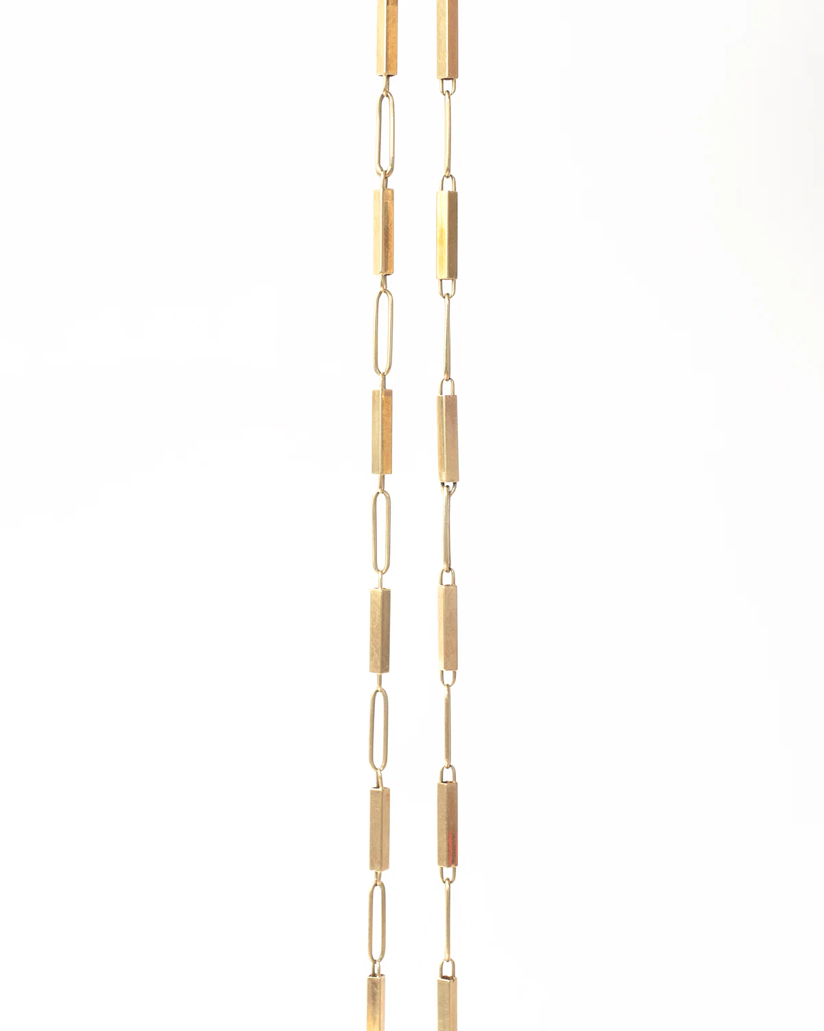 a post modern rectangular bar linker with alternating elongatedĀ paperclip links and spring ring clasp that links to any of the paperclip units for a bit of play in the lay.