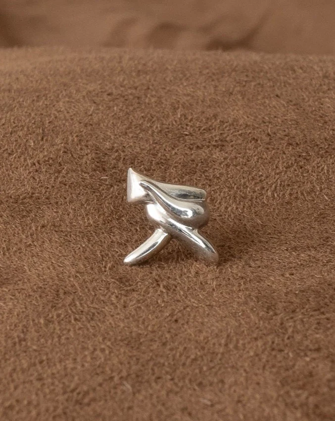 OJ B01 a.k.a. the HOLD TIGHT stud earrings are a variant of the second in-house OJ design. the soft and gestural shape was extruded from a small napkin doodle of a dancing ribbon. each pair of HOLD TIGHT studs is casted in solid 925 silver, assembled, hand-polished and hallmarked OJ here in New York City.