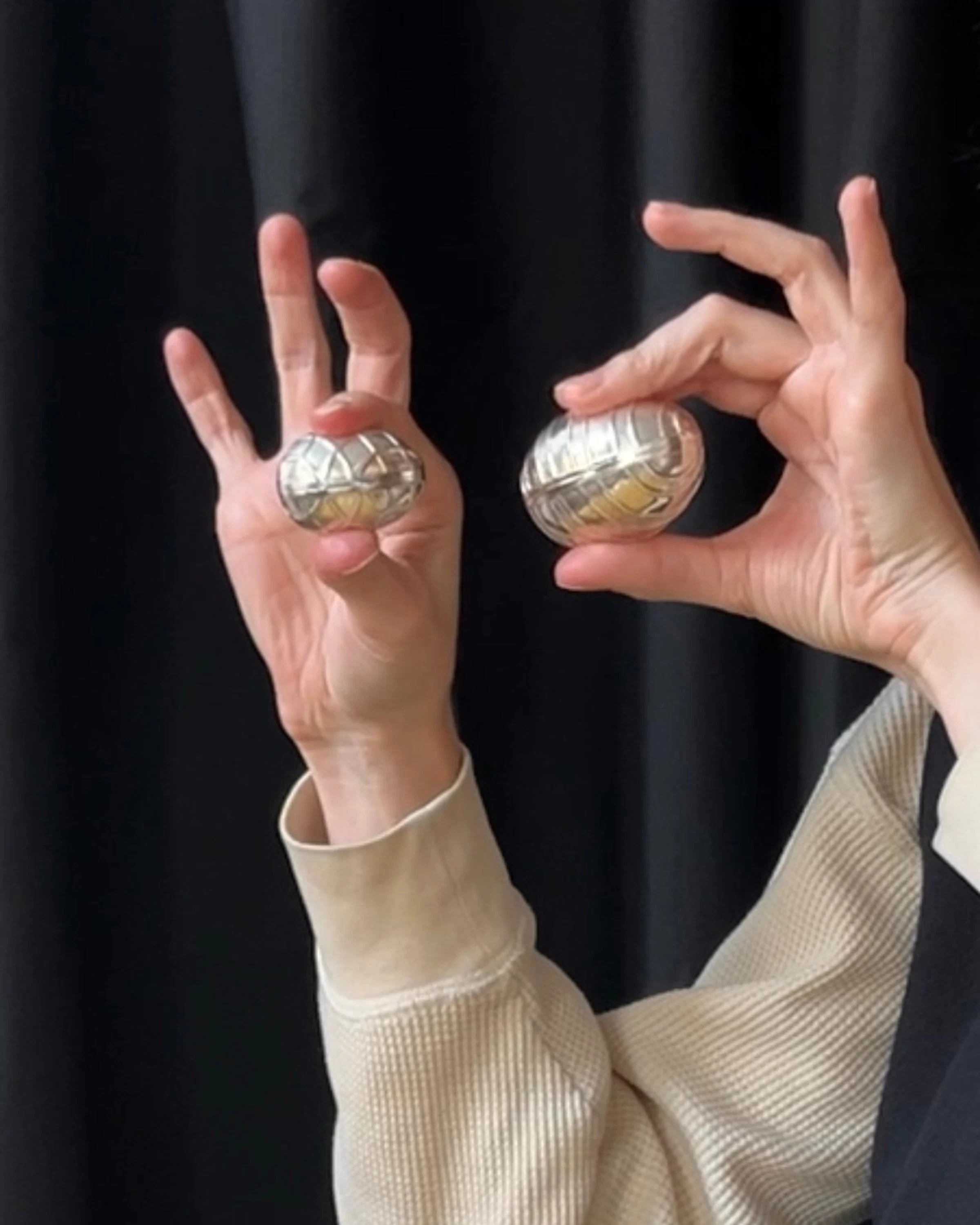 a hand crafted Italian chased silver hinged pill box in the form of a criss cross decorated egg. look for its companion (vess D2311 aka big egg) - and yes, they nest!Â