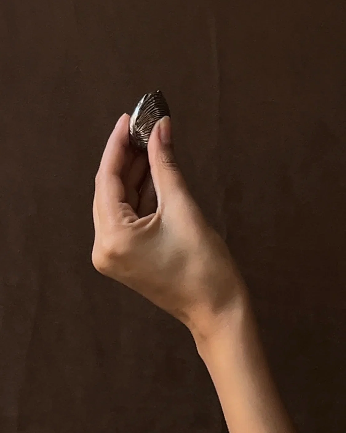 a hand crafted Italian (Firenze) chased silver hinged pill box in the form of a clam with a spacious interior perfect for carrying a small handful of bits and bobs, or pills.Ā