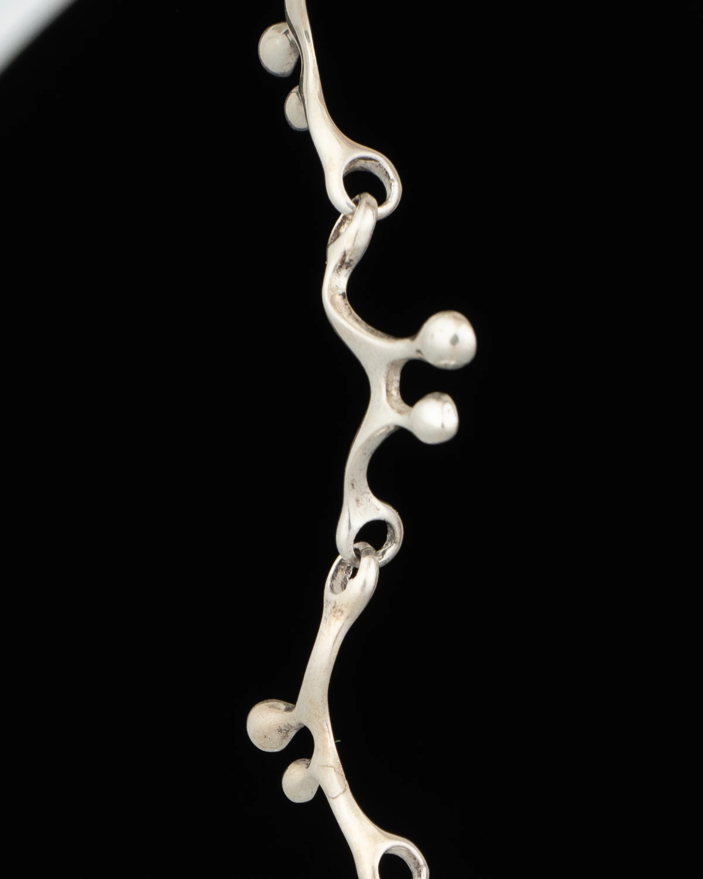 a studio crafted lost wax casted solids sterling silver soft double drip segmented link bracelet with bitsy spring ring closure.